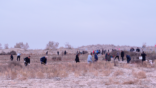 11月14日,植树现场,党员干部们干劲十足。特来克·木哈买提江摄