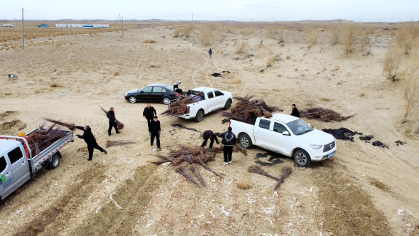 11月14日,小拐农业开发区退耕还林地植树现场各单位在领取树苗。孙伟超摄