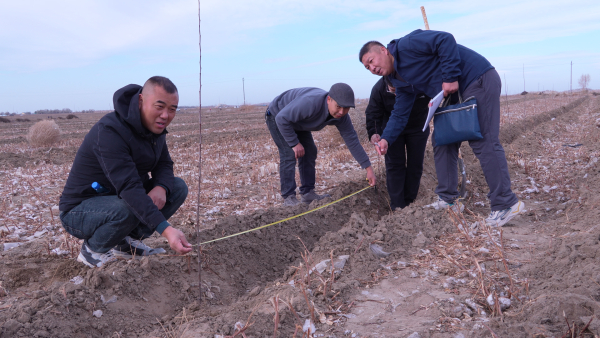 11月14日,林草局干部在植树现场验收各单位种树情况。特来克·木哈买提江摄