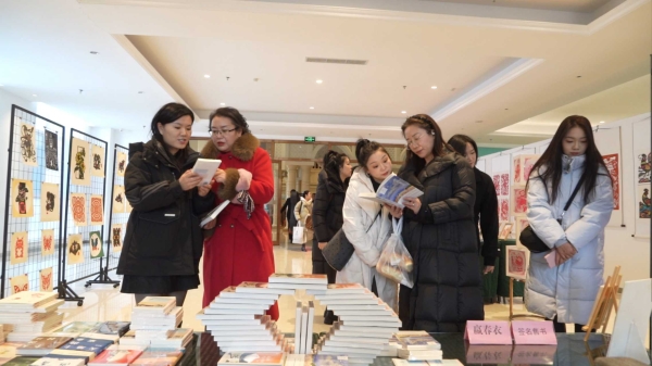 除了线路与优惠政策推介,本次活动还设置了特色展销会,吸引众多游客目光。农副产品、精美手工制品、奶制品、文创产品以及本土作家作品备受青睐。游客们不仅踊跃选购心仪商品,还积极参与剪纸等非遗项目的现场体验中。