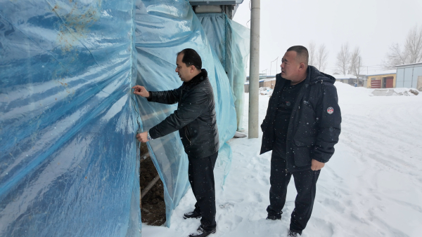 沙湾市大泉乡农业发展服务中心干部深入辖区养殖合作社和养殖户家中,查看牲畜圈舍的防风保温、饲草料储备等情况,并讲解严寒天气下饲养管理要点。马金明摄影