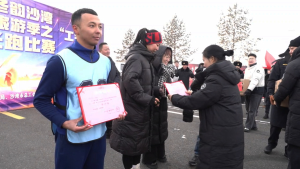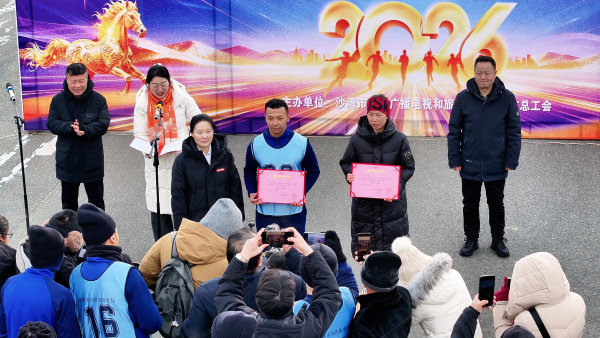 “热雪塔城·冬韵沙湾”2026年沙湾市欢乐冰雪旅游季之“工会杯”职工冬季长跑比赛颁奖现场一角。邓玺康摄
