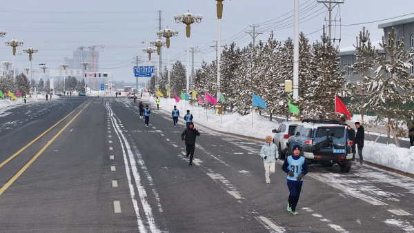 “热雪塔城·冬韵沙湾”2026年沙湾市欢乐冰雪旅游季之“工会杯”职工冬季长跑比赛开幕式现场。特来克·木哈买提江摄