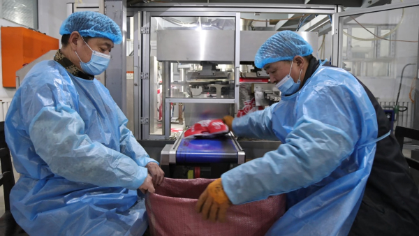 新疆豁豁牙食品有限公司总经理李承峰说:“春节临近,我们的订单也已经排到春节前,现在每天两条线同时生产,每天生产近30吨,确保春节期间的瓜子供应。我们的瓜子在周边县市都有代理,主要销往石河子、玛纳斯、博乐等地,甚至疆外的广州、四川都有我们的销售点。”